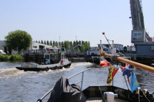 Bei der Ouden Zaanbrug bei Wormer warteten wir zuerst mit drei Sportbooten auf die Öffnung der Klappbrücke. Wir sollten gemäss Brückenwart etwa 14 Minuten warten, als ich von hinten ein Cargo-Schiff bemerkte. Selbstverständlich heisst es in diesem Fall, Platz machen, damit der Berufsschiffer schnell und ungehindert passieren kann.