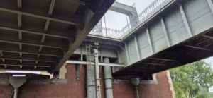 Am Beginn der Einfahrt führt eine Zugbrücke über den Zufahrtskanal und wir waren uns nicht sicher, ob die hoch genug sei. Steuerbordseitig sahen wir die Geleise der Bahn, die nicht steigen wollten, obschon wir uns immer mehr näherten. Schliesslich klappte es doch noch.