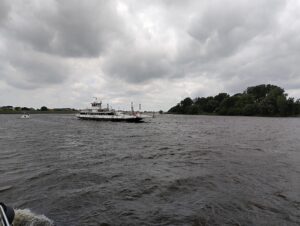 Weiter unten wichen wir noch einer frei fahrenden Fähre aus. Der Wind war immer noch heftig. Überraschenderweise erreicht man Hamburg, ohne lange durch Vororte kurven zu müssen.