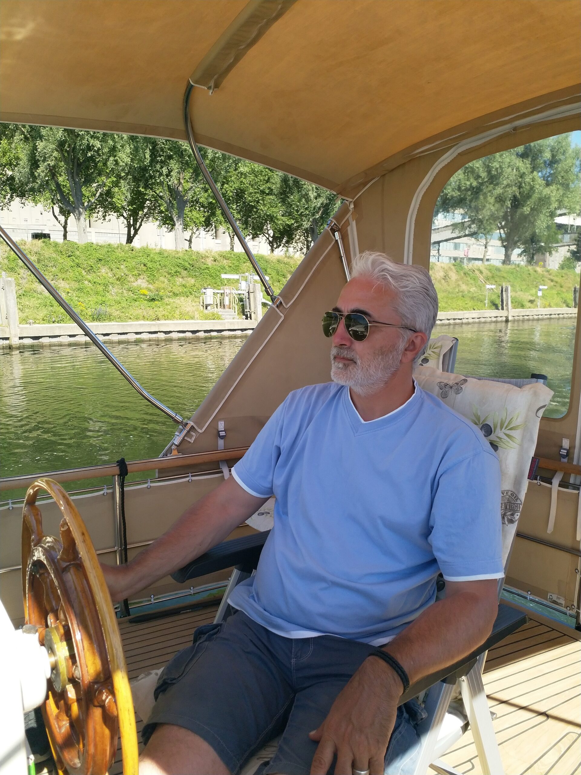 Kurze Zeit später passierte es: Die Joy meldete sich mit lautem Sirenenton: Motor überhitzt, Motorenöl-Problem. Wir befanden uns gerade im Juliana-Kanal, einer zu diesem Zeitpunkt von vielen Cargo-Schiffen befahrenen Strecke. Uns war gerade ein solcher Pot am Überholen, weshalb wir den Motor nicht abstellen konnten. Ich telefonierte sofort Robert, der im engen Kanal wendete und zu uns zurückfuhr. Inzwischen hatten wir den Motor gestoppt und alle Luken zum Motorraum geöffnet, damit die Hitze entweichen konnte. Die Motortemperatur betrugt etwa 95 C° statt normalerweise etwa 72 C°.