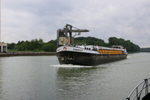 Nachdem wir die monetären Verpflichtungen gegenüber dem Hafen erledigt, den Schlüssel zurückgegeben, die Bilge und den Seewasserfilter geputzt hatten, fuhren wir 09:15 Uhr in Bad Essen los. Wir liessen noch einen Frachter passieren, dann drehten wir die Taranaki und fuhren in den Mittellandkanal. Es gab einigen Frachtverkehr, meist beladene Schiffe. Es ist schon erstaunlich, wie viel Fracht über den Mittellandkanal verfrachtet wird.