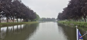 Heute war das Wetter beim Start so-so-là-là und deshalb waren wir voll eingekleidet, was auch beim Skipper lange Hosen resp. Jeans bedeutet. Der Kanal hat wenig Kurven und führt zeitweise schnurgerade durch die Landschaft.