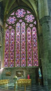 In einem Seitenschiff ist ein grosses Glasfenster Ladon zu sehen, das zu den grössten Glasfenstern Europas gehört. Zudem gibt es einen reich verzierten Hochaltar. Wir besuchten ein Orgelkonzert, das von einem Organisaten aus Dinant präsentiert wurde.