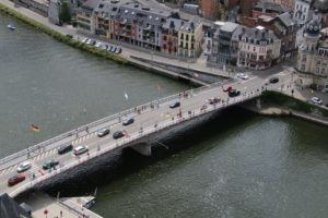 Unten sahen wir auch die Pont de Dinant, die Charles De Gaulle gewidmet ist. Während des Ersten Weltkriegs stürmte das Regiment von Leutnant Charles de Gaulle am 15. August 1914 die Zitadelle von Dinant, um sie den deutschen Besatzern zu entreißen. Der Überlieferung zufolge wurde der Leutnant beim Überqueren der Brücke ins Bein geschossen (andere Quellen sprechen von seiner Hand).