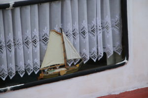Besonders freute uns die Tjalk in seinem Fenster. Wir sind immer noch auf der Suche nach so einem Modell.