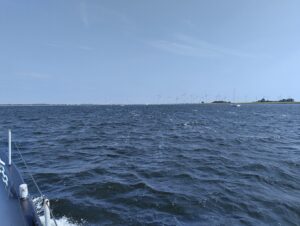 Es windete sehr stark und wir beschlossen – nicht zuletzt aufgrund der Empfehlung eines älteren Matrosen – den gleichen Weg zurückzufahren. Auf der ursprünglichen Route wären wir stark dem Gegenwind ausgesetzt gewesen und hätten dabei etwa 40 km zurücklegen müssen.