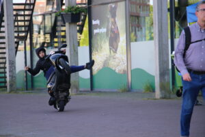 Vor dem Hafenbüro trafen wir noch ein paar Jungs, die mit ihrer Vespa ein Wheely darboten. Ich wollte das fotografieren und sein Kollege hupte ihn zurück. Die Fotos könnt ihr hier sehen und ich versprach, sie ihnen noch zukommen zu lassen.