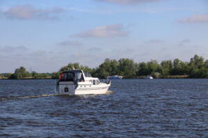So planen wir unsere Touren mit der App Waterkaart (hier die Version für MS Windows). Wir setzen den Startpunkt (aktueller GPS-Standort) und gehen zum Zielort, wo uns die Häfen angezeigt werden. Wir wählen den gewünschten Hafen und schon ist Waterkaart in der Lage, die Tour zu planen. Dabei wird die Durchfahrtshöhe (Höhe des Schiffes mit [5.90 m] und ohne Mast [3.40 m]) sowie der Tiefgang von 1.10 m berücksichtigt. Die Route berücksichtigt zudem die kürzest mögliche Distanz. Wenn wir mal einen zusätzlichen Umweg fahren wollen, z.B. durch einen schönen Ort, dann setzen wir einen entsprechenden Zwischenstopp.