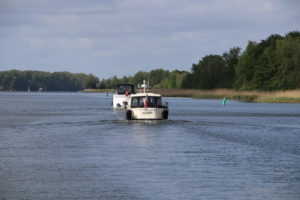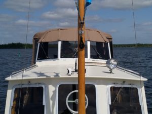 Dann fuhren wir gegen 09:30 Uhr los und mussten bereits kurz nach der Hafenausfahrt unseren Masten herunternehmen. Die Brücke war zu niedrig. Doch bald danach flatterten die Wimpel und Fähnchen wieder munter im Wind.