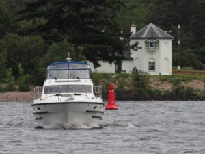 Es war eine ruhige Fahrt mit etwas Gegenwind, die durch viele Untiefen gekennzeichnet war. Unterwegs inspizierten wir mit dem Fernglas diverse Häfen, die für insgesamt fünf Schiffe viel zu klein sind. Peter wollte bei der Drehbrücke William Arrol festmachen. Die Landestege waren aber wenig einladend und so fuhren wir weiter zur Laggan Lock, wie das im Programm von Ruedi auch so vorgesehen war.