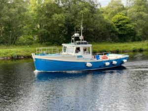 Es war eine ruhige Fahrt mit etwas Gegenwind, die durch viele Untiefen gekennzeichnet war. Unterwegs inspizierten wir mit dem Fernglas diverse Häfen, die für insgesamt fünf Schiffe viel zu klein sind. Peter wollte bei der Drehbrücke William Arrol festmachen. Die Landestege waren aber wenig einladend und so fuhren wir weiter zur Laggan Lock, wie das im Programm von Ruedi auch so vorgesehen war.