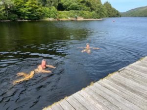 Nach der Ankunft erfreuten sich Ramona und Doris an einem kühlen Bad bei etwa 16 ° C. Sie fanden aber wenig Nachahmer, so dass der temporäre Bademeister Ruedi nach deren Auswasserung den Service aufhob und die Badeleiter wieder einzog.