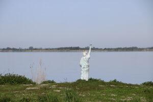 Wir legten um 9:30 Uhr ab und fuhren zuerst den gleichen Weg zurück, den wir gestern genommen hatten. Die Sonne schien und es gab überhaupt keinen Wind. Vor der Brug Blauwehand bogen wir Steuerbord ab und fuhren an einer Freiheitsstatue vorbei, die eine Kopie derjenigen in New York darstellt. Im Gegensatz zu derjenigen in New York erfreut sie sich hier echter Freiheit. Sie kann sagen, was sie will, schreiben was sie will und kritisieren, wen sie will. Trotzdem verunglimpft sie niemanden und bleibt stets bei der Wahrheit.