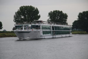 Zuerst begegneten wir dem Flusskreuzfahrtsschiff Amadeus Imperial, das unter deutscher Flagge fährt.