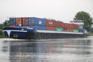 Etwas später sahen wir ein Cargo-Schiff mit Containern. Das Fassungsvermögen beträgt 84 Container.