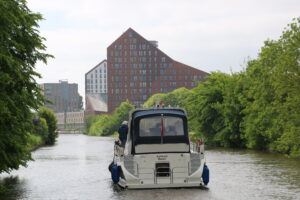 Das war auch heute der Fall und ohne funktionierendes Bugstrahlruder war es dann schon eine Herausforderung, durch die Kanäle zu fahren. Vor den Brücken mussten wir manchmal länger warten. Es erforderte insbesondere von Brigitte starke Nerven, uns schadlos von Hindernissen fern zu halten, wenn ich mit Steuern dem Wind nicht mehr gut entgegenhalten konnte.