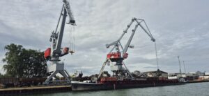 Bald erreichten wir den Zielhafen. Dort kann das Tor mit einer Telefonnummer ausgelöst werden, wobei ebenfalls darauf zu achten ist, dass gerade keine Frachter vorbei fahren. Es klappte bestens.