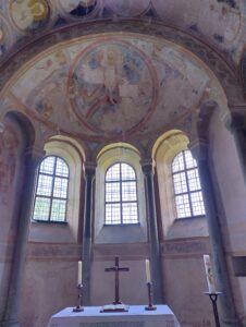 Wir staunten nicht schlecht und traten in die Sigwardskirche ein. Sie gilt als eine der bedeutendsten romanischen Kleinbauten des 12. Jahrhunderts in Deutschland und eine von wenigen Kirchen in Europa,die noch die Originalfarben aus der Romanik zeigen.