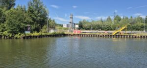 Unterwegs sahen wir nahe von grossen Treibstofftanks, dass als Ölsperre unter Wasser eine Spur von Luftblasen allfällige Ölverschmutzungen zurückhalten. Das ist eine Massnahme der Treibstofffirmen zur Eindämmung von Umweltschäden verursacht durch Treibstofflecks.