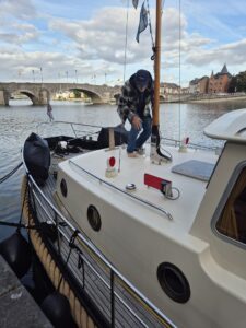 Kurz nach 13:30 erreicht die Gruppe das Tagesziel, Namur. Die Passion kommt gegen 14:30 in Namur an und über Funk erfahren wir, dass auch die Roi de Babar wieder flott ist und die Fahrt zusammen mit der Rina Blue fortsetzt. «Peter Mac -Gyver» hat ein «Improvisiertes Überbrückungskabel» gebastelt, so dass die Roi Babar wieder starten konnte.