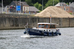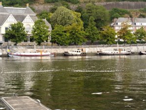Wie eng die Fahrt durch Namur auf der Sombre ist, lässt sich am Bild erahnen. Die Fahrt erfordert jedenfalls volle Konzentration und fahrerisches Geschick der jeweiligen Kapitäne.