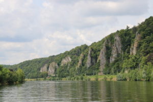 Heute morgen verliessen wir den schmucken Hafen in Huy um ca. 9:00 Uhr und wandten uns bergwärts. Und es gibt sie wirklich in den Ardennen: Berge mit schönen Wäldern und tollen Felsen.