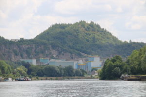 Wir fuhren weiter die Maas hoch und kamen an verschiedenen Abbaugebieten vorbei. Die Ardennen liefern Sand, Kalk und Schottersteine, die auf Cargos verladen werden. Ein Teil der Transporte geht flussabwärts, der andere flussaufwärts bis Namur, wo die Sombre abzweigt. Diese Abzweigung führt nach Antwerpen.