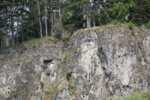Die Gegend ist auch bekannt für Wanderungen und Klettereien. Wir konnten unterwegs eine Seilschaft dabei beobachten. In der Bildmitte am unteren Bildrand ist ein Kletterer zu sehen, der oben vom Seilersten gesichert wird.