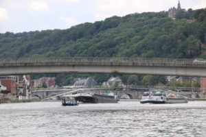 Nun erreichten wir Namur, wo die Maas mit einem Nebenarm Richtung Antwerpen verzweigt. Die oben erwähnten bergwärts fahrenden Cargos nehmen dann oft diese Verzweigung, die sogenannte La Sambre.