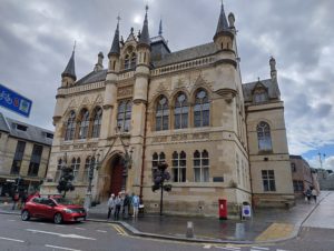 Inverness ist die nördlichste Stadt in Schottland. Sie liege auf gleicher Höhe, wie Moskau. So berichtete uns die Stadtführerin. Wir hielten vor dem Stadtparlament und erfuhren, dass ein Bürger auf der gegenüberliegenden Seite Sprüche aus der Bibel angebracht habe. Wer diese Texte von den Stufen nicht lesen könne, der sei für ein Amt als Abgeordneter ungeeignet.