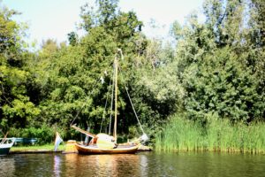 In der Schweiz kennen wir ja Schrebergärten. Die gibt’s in den Niederlanden auch, einfach auf eine alternative Art. Die Anlegestege sind alle privat und entlang dem Kanal haben die Eigner sicher an die 20 Häuschen mit gepflegten Liegeplätzen, einem eigenen Anlegesteg und einem Schiff festgemacht.