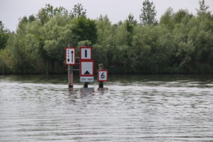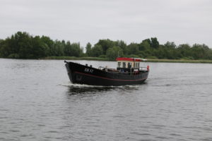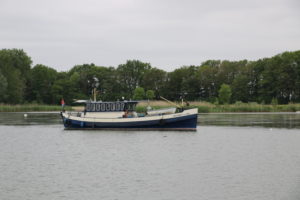 So fuhren wir an Steuerbordseite des Vossemeeres Richtung Elburg. Hinter uns fuhr ein Cargoschiff, die Grinza VI, und wir rechneten damit, dass sie uns bald überholen würde. Wir täuschten uns, denn plötzlich verliess sie die Fahrrinne und steuerte eine rote Tonne steuerbordseitig an, statt korrekt backbordseitig. Dort ist das Wasser etwa 20 cm tief und es war mir sofort klar, dass sie auf Grund auflief. Ich meldete die Beobachtung Robert über Funk, der meinte trocken: „Selber schuld!“. Wir stellten auf dem Kartenplotter fest, dass das Schiff keine Fahrt mehr machte. Wir konnten dann am späteren Nachmittag feststellen, dass die Grinza VI wieder flott gemacht wurde.