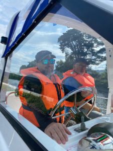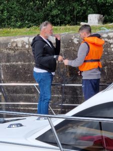 Arthur fuhr das Schiff sicher vom Steg, reihte sich in den Konvoi ein und legte unser Schiff sicher an die Schleusenwand auf Backbord. Auch das Ausfahren gelang so, als hätte er jahrelange Erfahrung.