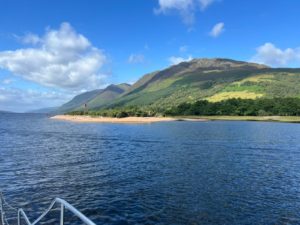Wir befuhren zuerst den Loch Lochy, vorbei an der LeBoat-Basis. Wir fragten uns, wie die Kunden bei Starkwind rückwärts wohl anlegen würden.