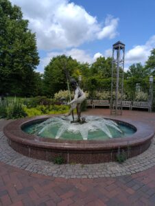 Wir gingen anschliessend zu Fuss ins Dorf durch einen Park mit einem Neptun und tranken in einer Konditorei Kaffee respektive Tee. Anschliessend kauften wir im Aldi ein und Brigitte holte noch Brot aus der Bäckerei.