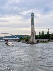 Nach dem Frühstück klären wir die Situation mit der Roi de Babar ab. Der Motor scheint wieder zu arbeiten, jedenfalls lief er heut schon fünf Minuten störungsfrei. Also starten alle zusammen die Fahrt der heutigen Etappe. Die Roi de Babar muss jedoch den Brennstofftank beim Bunkerboot in Liege auffüllen, Deshalb setzen sich die Babar und die Rina Blue von der Gruppe ab.