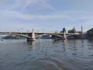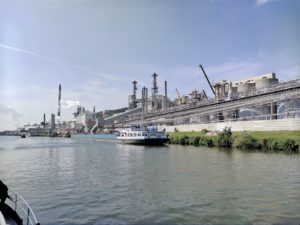 Vor uns verliess eine schöne mehrstöckige amerikanische Yacht unseren Hafen. Der Skipper drehte nach Steuerbord und fuhr die Maas bergwärts, ohne sich einmal umzusehen. Von hinten kam ein Cargo-Schiff, das bedeutend schneller unterwegs war, als die Motoryacht. Die vorausfahrende Yacht machte auch nach den Brücken keinen Platz, was den Schiffsführer des Cargoschiffes entsprechend auf die Palme brachte. Auch wenn sie nicht die gleiche Sprache gesprochen hatten, verstanden hat der Vorausfahrende die Flüche sicher allemal.