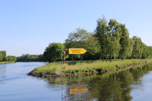 Nach eine Weile später verliessen wir die Ems und bogen in den berühmten Küstenkanal ein, der uns nach Oldenburg bringen wird. Es sollte die radikalste Kurve bleiben an diesem Tag: Der Küstenkanal ist mehrheitlich gerade, abgesehen von ein paar langgezogenen Kurven.