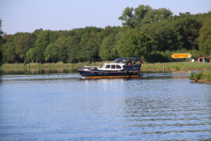 Der Küstenkanal wird gut unterhalten. Das sahen wir einerseits an den neuen Steinen, die über weite Strecken das Ufer schützen. Zudem konnten wir ein Arbeitsschiff beobachten, das gerade daran war, eine Uferböschung mit Steinen zu verstärken.