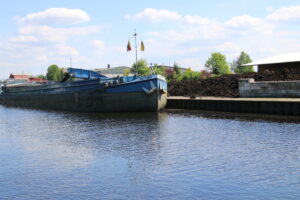 Unterwegs fuhren wir auch an einem Betrieb vorbei, bei dem wir grosse braune Erdhaufen beobachteten. Die Firma warb mit dem Slogan „We let it grow“, weshalb wir auf Torf schlossen, der auf Cargo-Schiffe verladen wurde.
