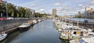 Kurz darauf war es soweit: Wir erreichten das Zentrum von Lüttich. Nach dem Passieren der „Grande Poste“ und dem Universitäts-Aquarium näherten sich die ersten Boote gegen 13:15 Uhr der Kennedy-Brücke – und fuhren in den „Port des Yachts de Liège“ ein.