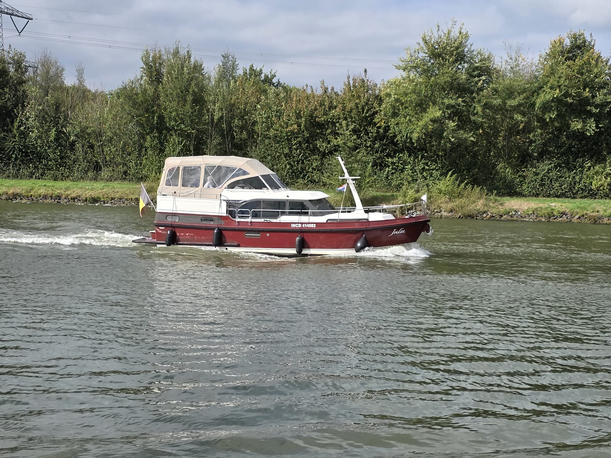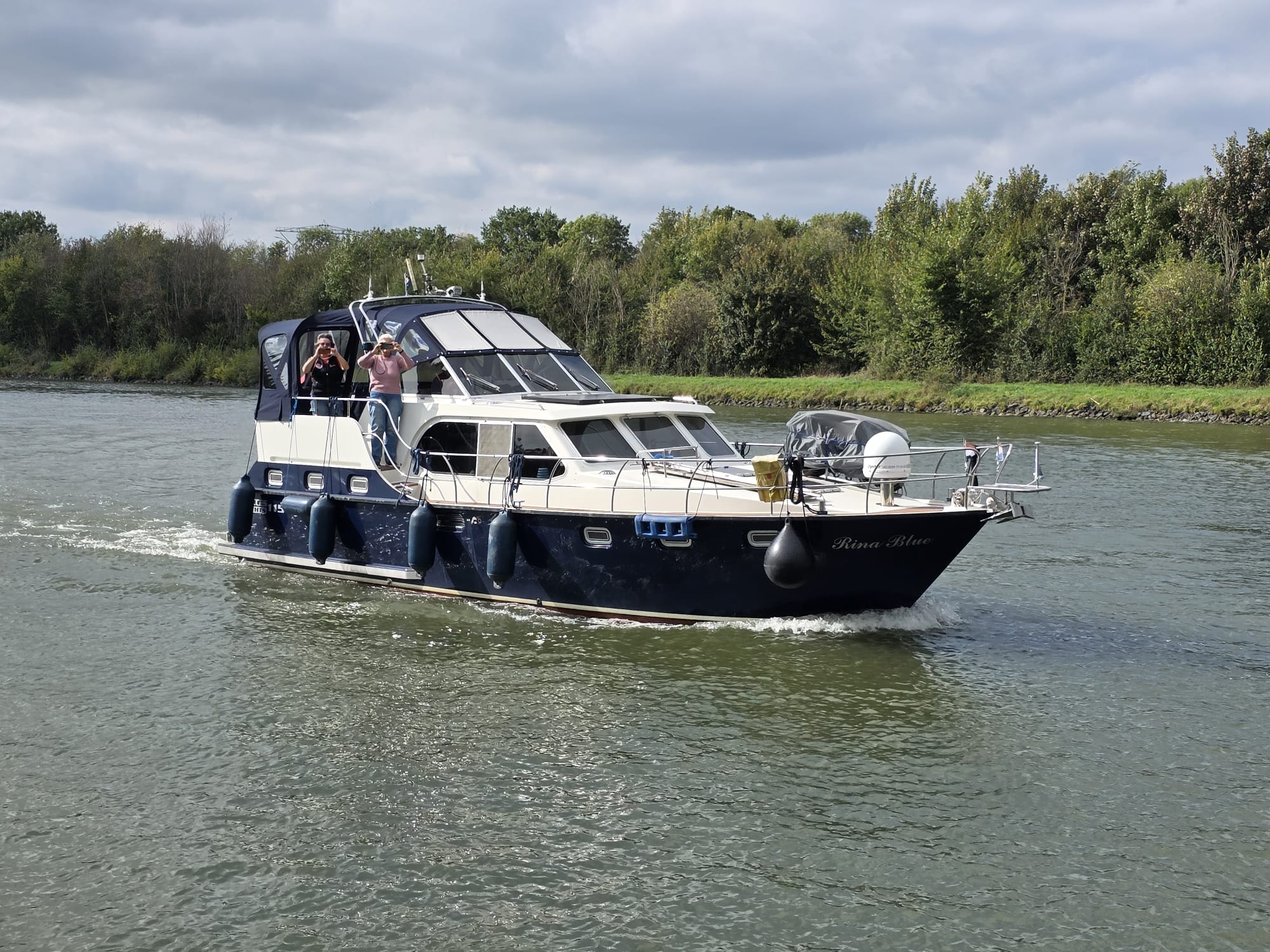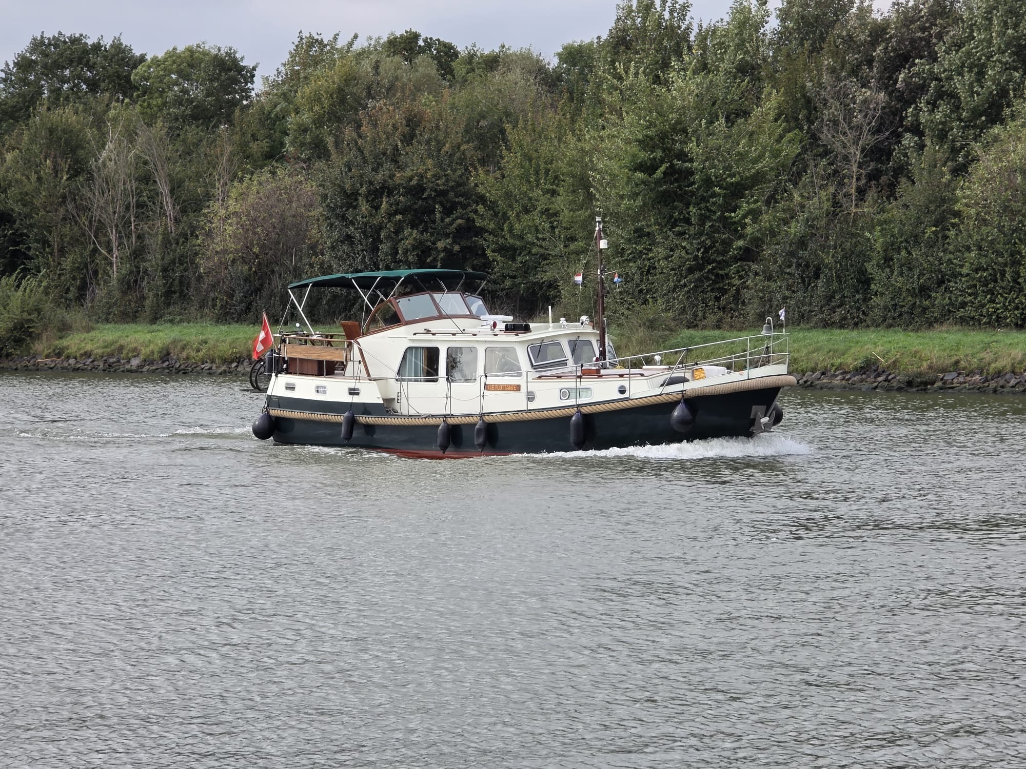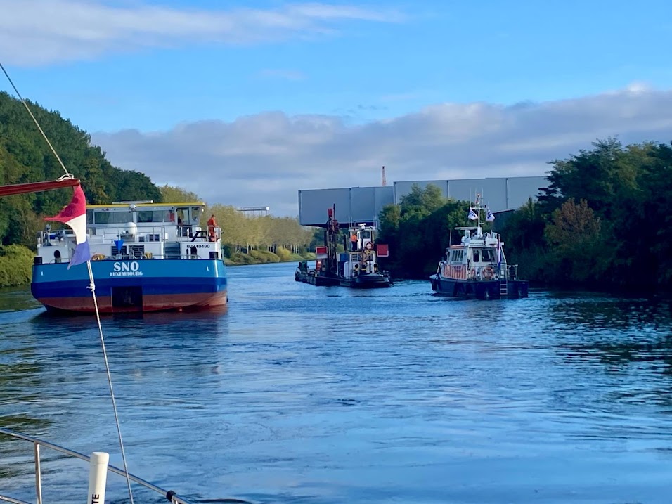 Auch die Letzte Nach war sehr kühl. Am Morgen geht die Sonne auf und emsiges Treiben ist auf dem Steg anzutreffen. Die Leinen und Stromkabel werden gegen 9:00 Uhr eingezogen und die Gruppe verlässt den Hafen Treech42 in Maasticht. Zuerst geht es noch ein Stück auf der Maas zu Tal, danach fahren wir auf dem Juliana Kanal. Bei der Kehrschleuse Limmel wird gearbeitet, so dass im Schritttempo die Baustelle passiert wird. Voraus fährt ein Frachtschiff welches nach der Baustelle schnell Fahrt aufnimmt. Unsere Gruppe zieht sich schon bald in die Länge, da der Roi de Babar nicht mit den Anderen schritthalten kann. Gemächlich geht es bis zur Schleuse Born, wo alle auf die Schleusung warten müssen. Es sind sehr viele Frachtschiffe unterwegs, wodurch auch Schleusungen verzögert werden. Eine Fahrstunde nach der Schleuse Born erreichen wir die Schleuse Maastricht und können nach kurzem Warten einfahren. In der 13.85 Meter hohen Schleuse gibt es nur Schwimmpoller auf der Backboard Seite, weshalb ein Schiff im Päckchen schleust. Nach der Schleuse steuern einige das Bunkerschiff an um den Treibstoff aufzufüllen. Die Fahrt zu unserem Ziel führt noch ein paar Kilometer auf der Mass zu Berg. Alle Schiffe sind nach dem Törn zurück.