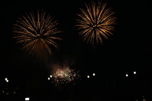 Dann in Dinant: Jubel, Trubel, Heiterkeit! Die Kaden an den sonst überfüllten Kaden mit Zetteln versehen, dass man nicht anlegen konnte. Es gab eine Menge Volk. Dazu Paraden der Belgischen Luftwaffe und endlich dämmerte es uns: Belgien feiert heute am 21. Juli seinen Nationalfeiertag. Die reservierten Kaden sind wegen dem geplanten Feuerwerk, damit keine Schiffe zu Schaden kommen. Das Feuerwerk wird auf der Brücke rechts abgefeuert und kann dann in der ganzen Stadt eingesehen werden.