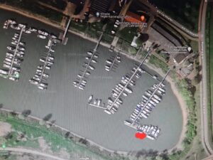 Schliesslich näherten wir uns unserem Tagesziel, dem Hafen des Yacht-Club Wesel. Der Hafenmeister hatte uns ein Whatsapp geschickt, das zeigte, wo wir anlegen sollten: Zwischen einem anderen Schweizer Schiff und einem Segler. Beim Näherkommen bestätigte sich unsere Vermutung: Es handelte sich beim Schweizer Schiff um die Rina Blue, die wir vor einigen Tagen verabschiedet hatten.