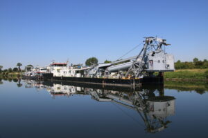 Vor der Schleuse sahen wir noch ein interessantes Arbeitsschiff.