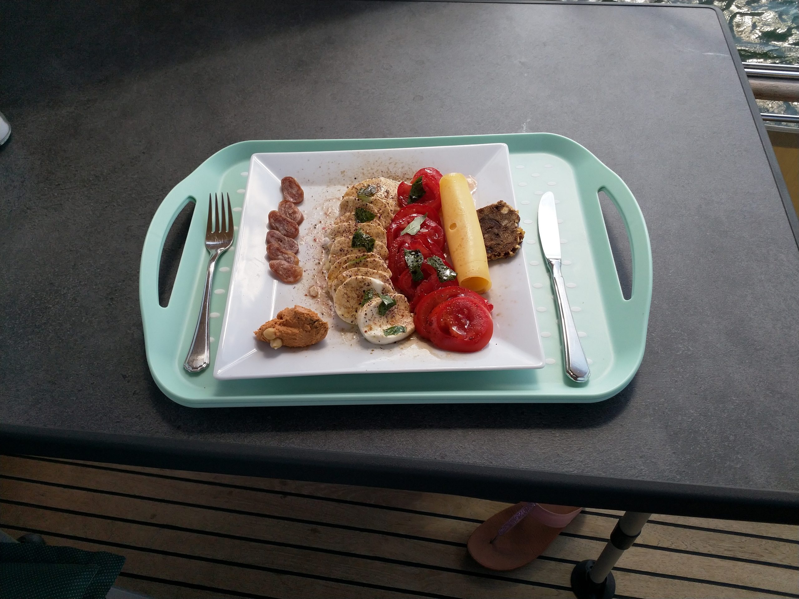 Kilian bereitet ein leichtes Mittagessen vor, das während der Fahrt genossen wird.