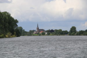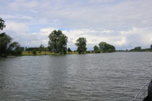 Die Maas wurde immer breiter und zeigte sich von ihrer schönsten Seite. Links und rechts säumen Baumreihen den Fluss und dämmen den allgegenwärtigen Wind etwas ein. Es gibt viele Weideflächen und immer wieder Seen, die durch Ausbaggern vom Sand entstanden sind.