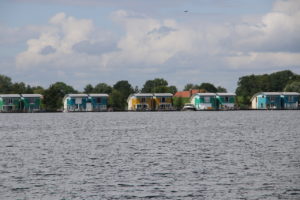 Schliesslich verliessen wir die Maas und fuhren durch den See zum Watersportcentrum Maasbommel.Dem Strand entlang sind schöne farbige Ferienhäuser entstanden, jedes mit Seeanstoss und Anlegesteg.