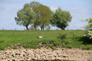 Die Störche sind aus Afrika zurück. Wir sahen mehrere Exemplare auf Horsten oder bei der Futtersuche.