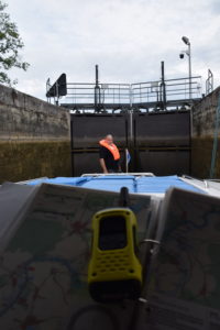 Der heutige Tag stand ganz im Zeichen von «Höher», «Weiter», «Schneller» und «Härter». Die «höchste» Schleuse hatte Petrus für uns geöffnet und uns mit Regen beschenkt. Die Crew montierte Top Regenbekleidung. Das war auch nötig, konnten wir doch unsere Biminis wegen der niedrigen Brücken nicht mehr weiter nutzen.